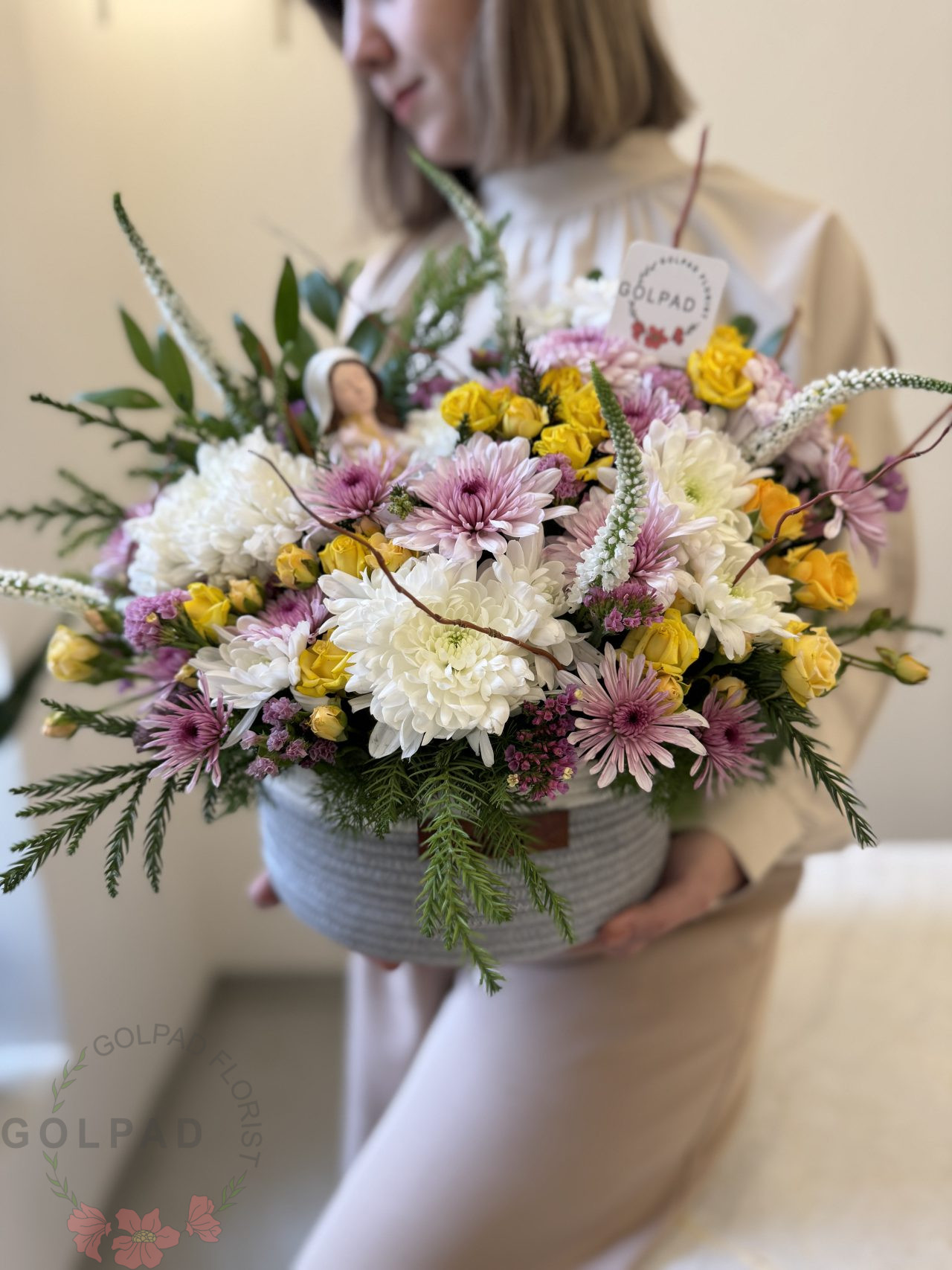 همچنین، بافت گلها میتواند حس خاصی را به چیدمان القا کند. به عنوان مثال، گلهای پر از پرز و مخملی مانند داوودی، حس لطافت و گرما را منتقل میکنند، در حالی که گلهایی با ساقههای خشنتر مانند اکالیپتوس حس قدرت و استحکام را اضافه میکنند. این ترکیب رنگ و بافت باعث ایجاد تعادل بصری و افزایش عمق چیدمان میشود.رر