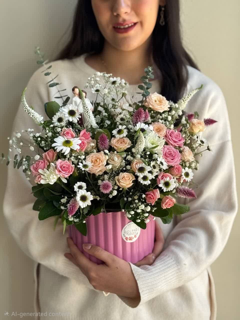 با باکس گل درسا لحظهای سرشار از عشق و طراوت برای مادران عزیز بسازید. این باکس زیبا با ترکیبی هماهنگ از رز مینیاتور لطیف، ورونیکای ظریف، تاج خروس خاص، داوودی تازه و گل عروس ابری جلوهای بینظیر و دلنشین ایجاد میکند که هر نگاه را مسحور خود میکند.