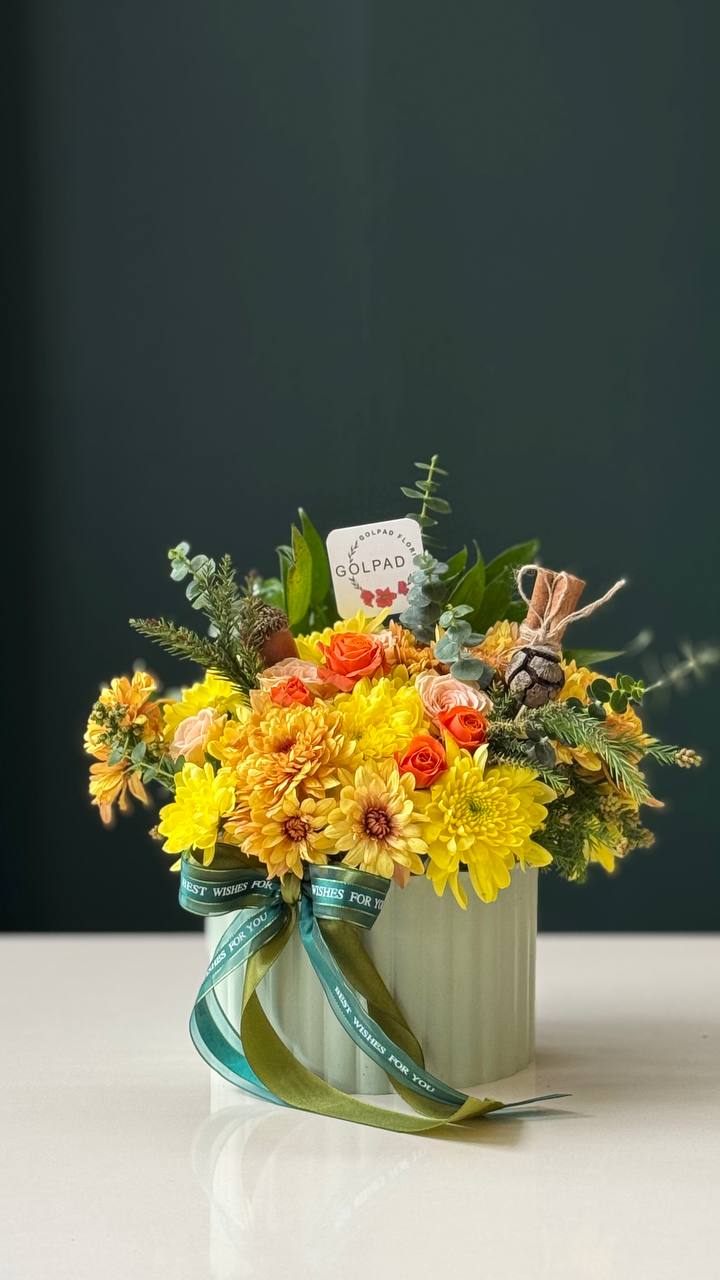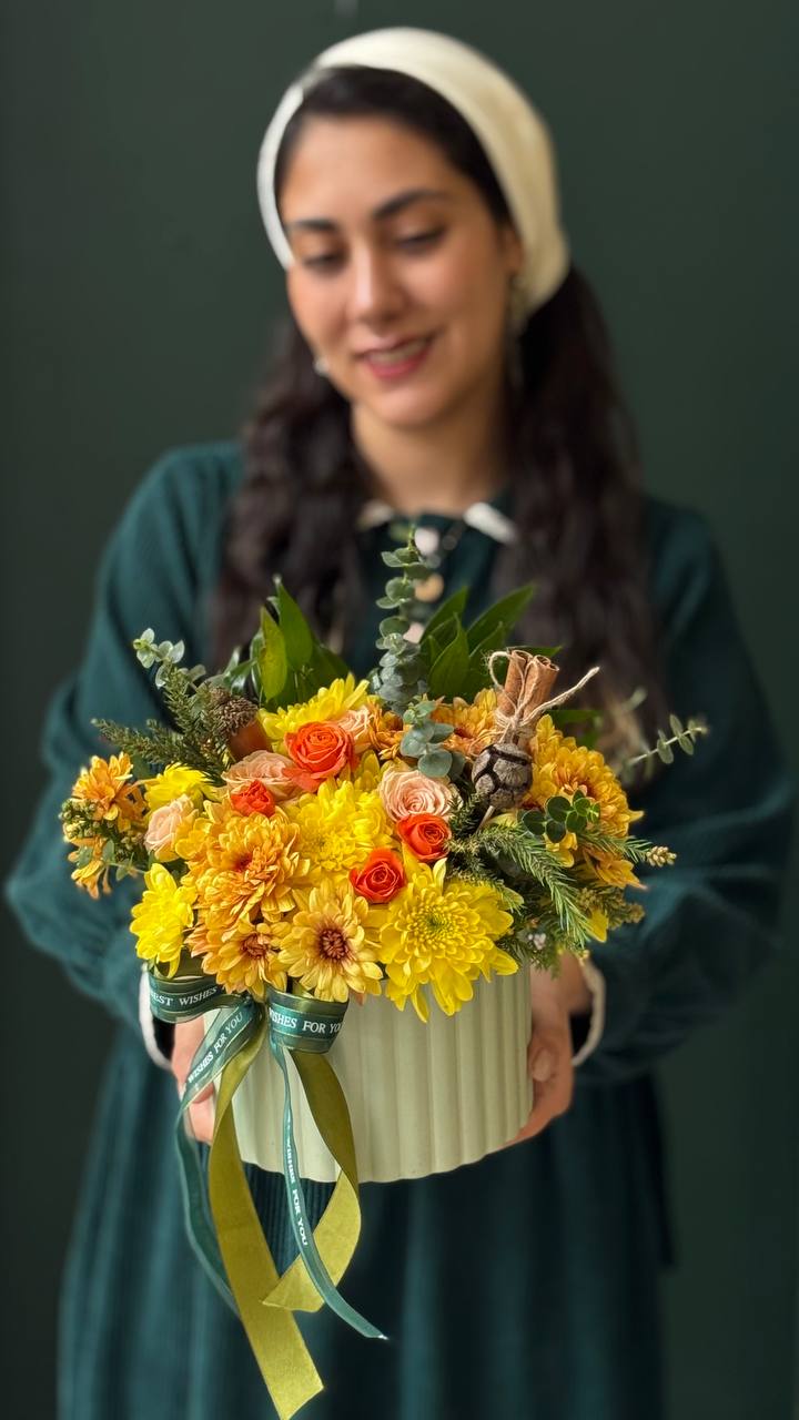باکس یوتاب با طراحی دقیق و خلاقانه، تجربهای متفاوت از هدیه شب یلدا ارائه میدهد. داوودیها و رزهای مینیاتور جلوهای لطیف و کلاسیک دارند، دانا با بافتی زیبا به ترکیب عمق میبخشد و تزیین دارچین، بلوط و میوه حس گرما و حالوهوای پاییزی را تکمیل میکند. رنگ زرد غالب باکس، انرژی و شور زندگی را منتقل کرده و این باکس را به هدیهای چشمنواز و بهیادماندنی تبدیل میکند.