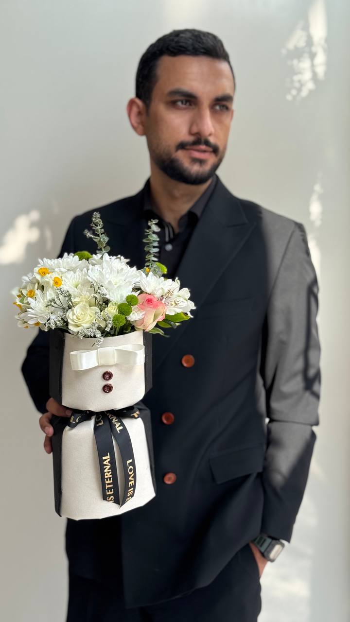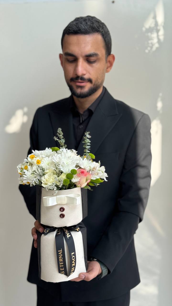 بوکت گل هومان با نگاهی رسمی و مردانه طراحی شده و ترکیبی هماهنگ از داوودی، رز، نرگس و رز مینیاتور را در کنار هم قرار میدهد. داوودیها ساختار منظم و وقار بصری ایجاد میکنند، رزها حس احترام و اصالت را منتقل میکنند، نرگس با رایحه و فرم خاص خود جلوهای آرام و صمیمی به بوکت میبخشد و رزهای مینیاتور ظرافت کنترلشدهای به ترکیب اضافه میکنند.این بوکت انتخابی شایسته برای قدردانی از پدران است؛ هدیهای رسمی و خوشساخت که بدون اغراق، پیام احترام، محبت و قدردانی را به شکلی ماندگار منتقل میکند.