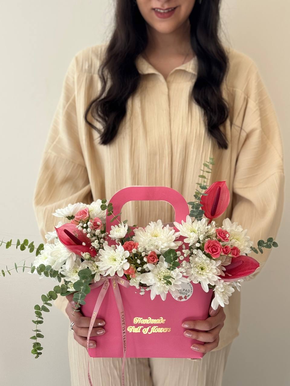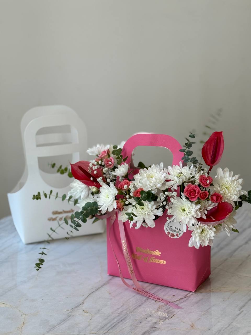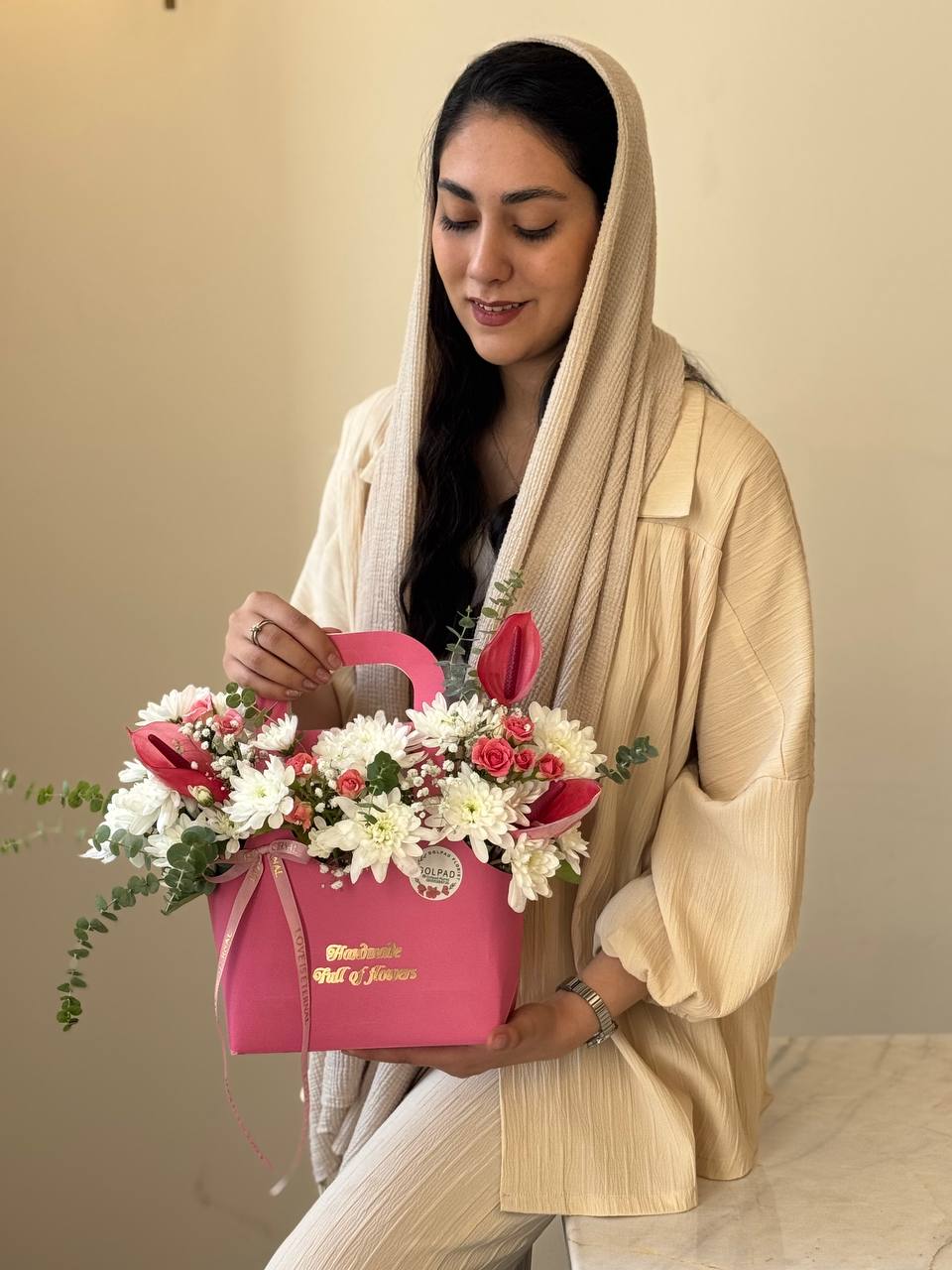 این بگ گل با طراحی شیک و رنگهای آرامشبخش، حس قدردانی و محبت شما را به زیباترین شکل ممکن منتقل میکند.