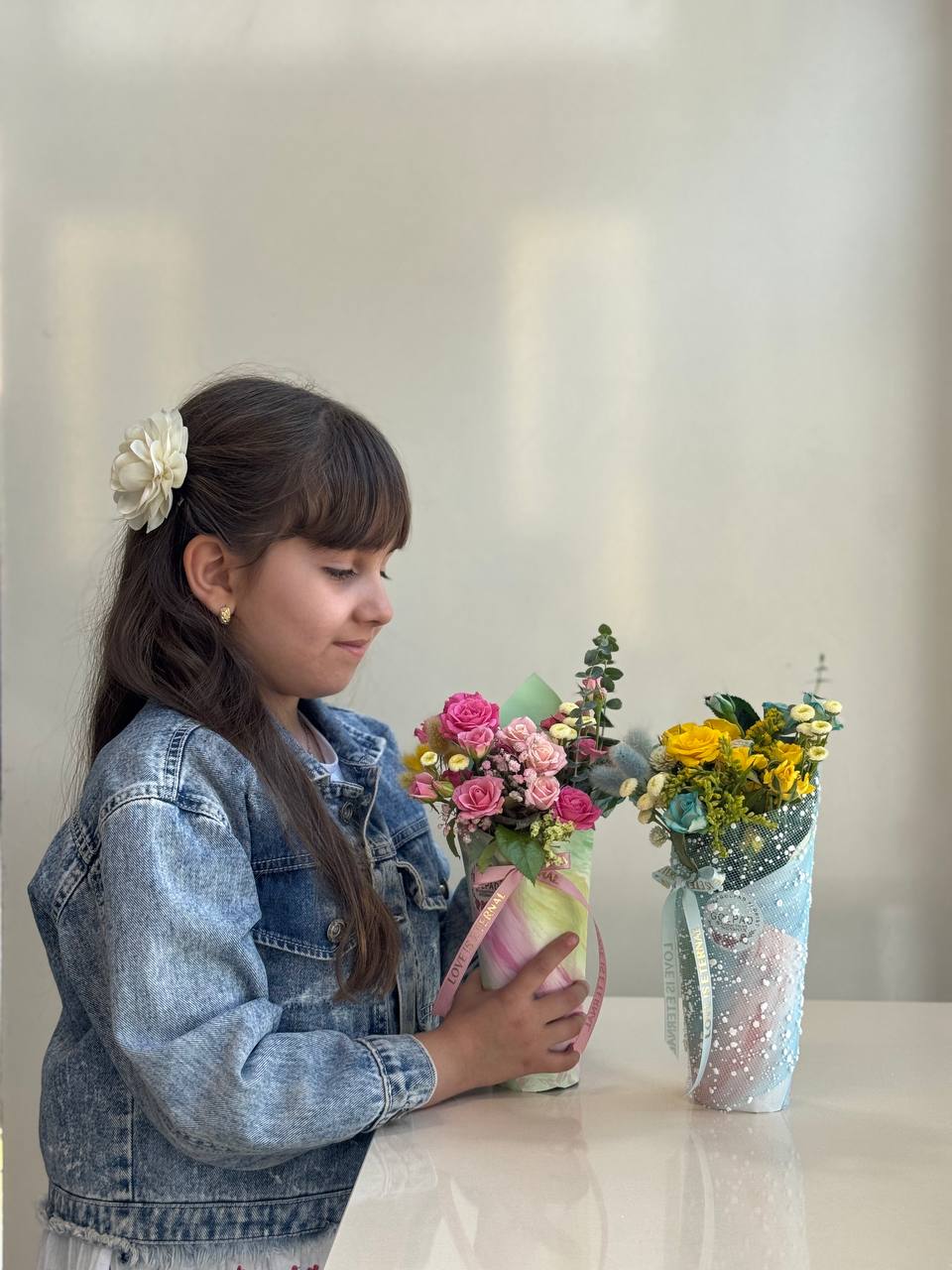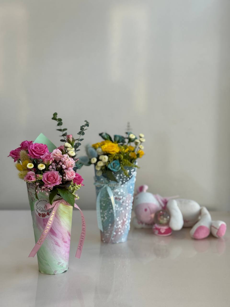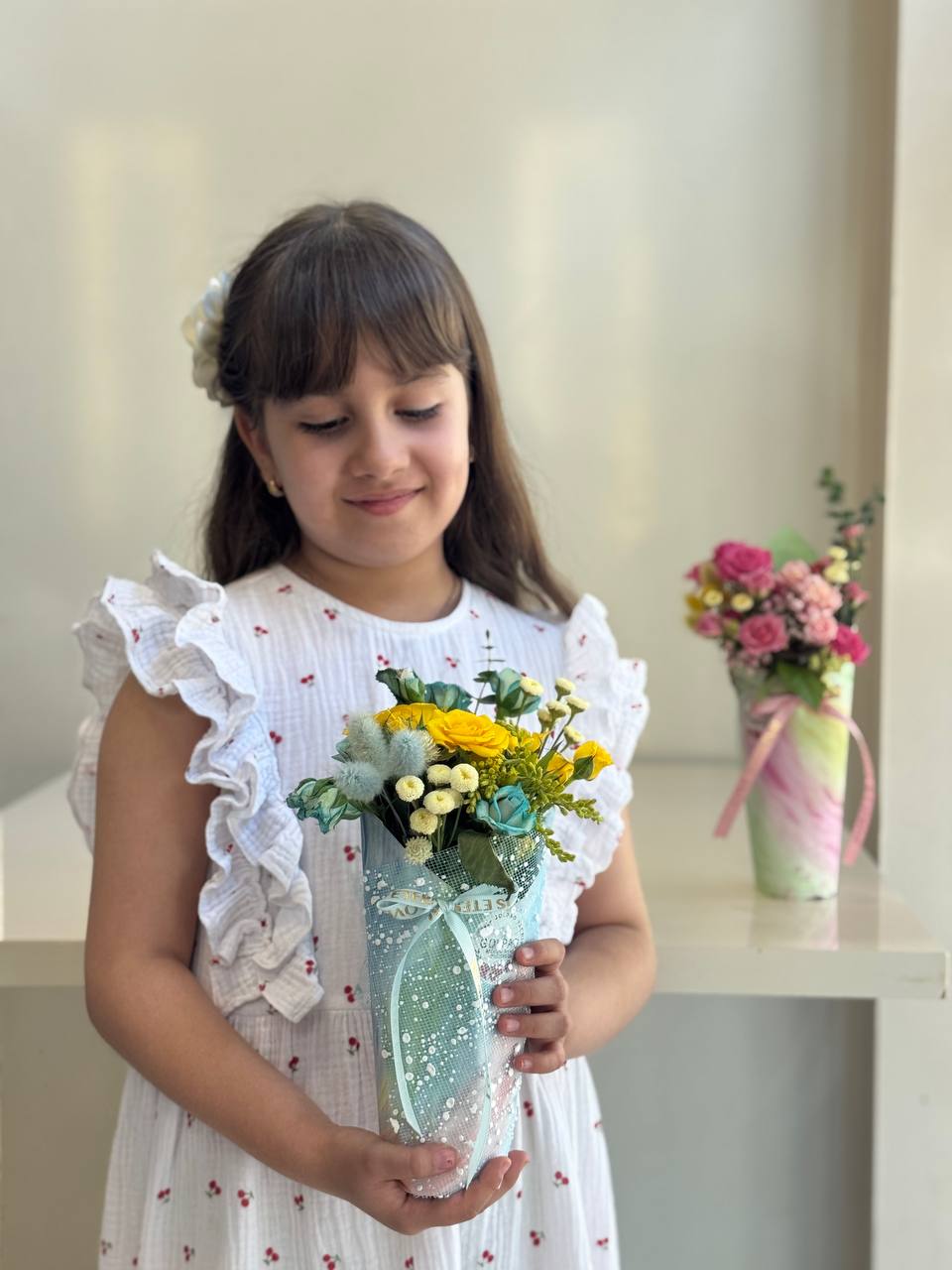 دسته‌گل مینیمال سانیا، تلفیقی از لطافت رز مینیاتور، گل عروس و درخشش عصا طلا است که هر نگاه را مسحور می‌کند.