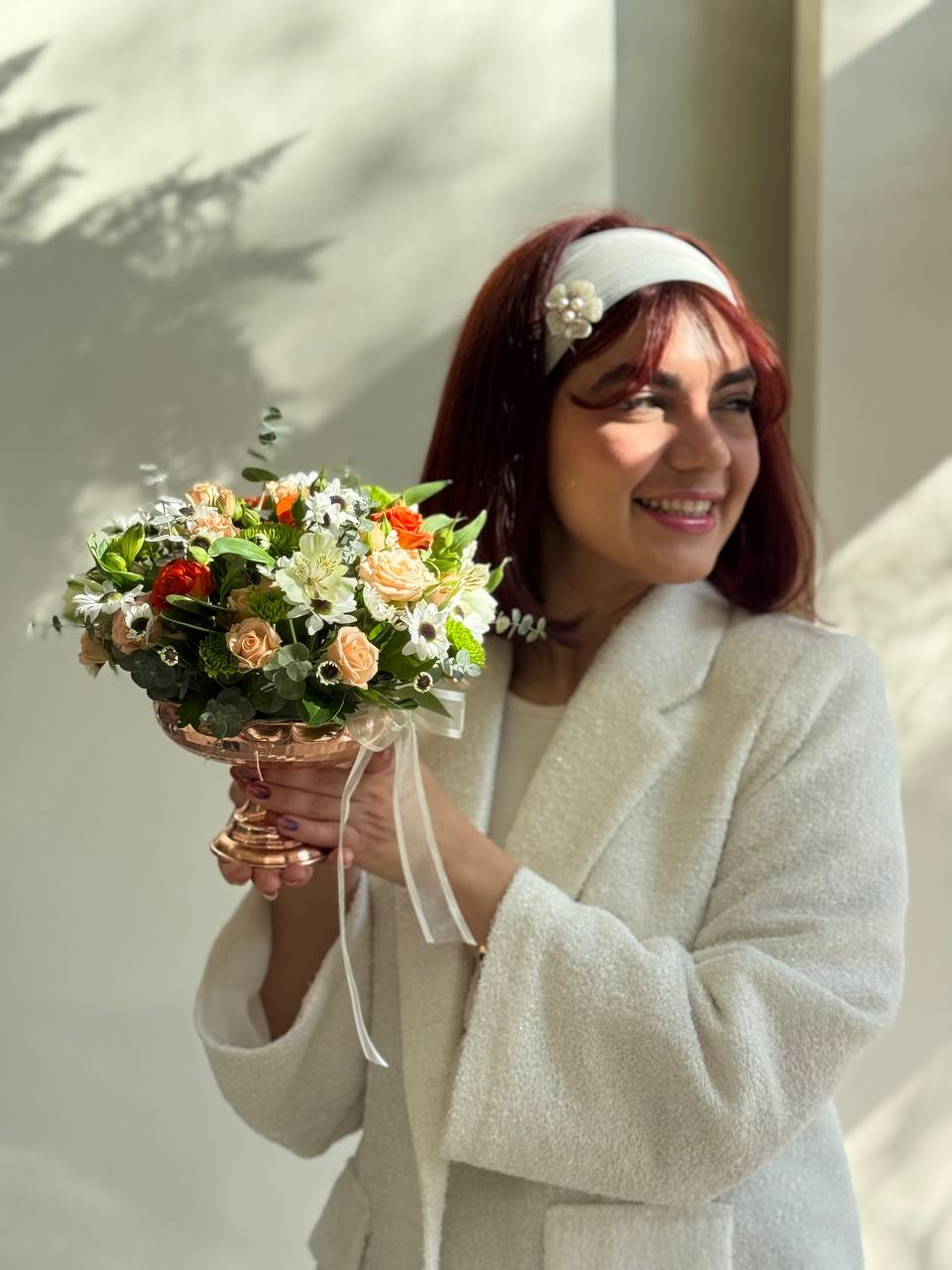 ظرف مسی کیمیا با رزهای مینیاتور لطیف، داوودیهای پرانرژی و آلسترهای درخشان؛ هدیهای منحصر به فرد، لوکس و فراموشنشدنی برای روز مادر.
