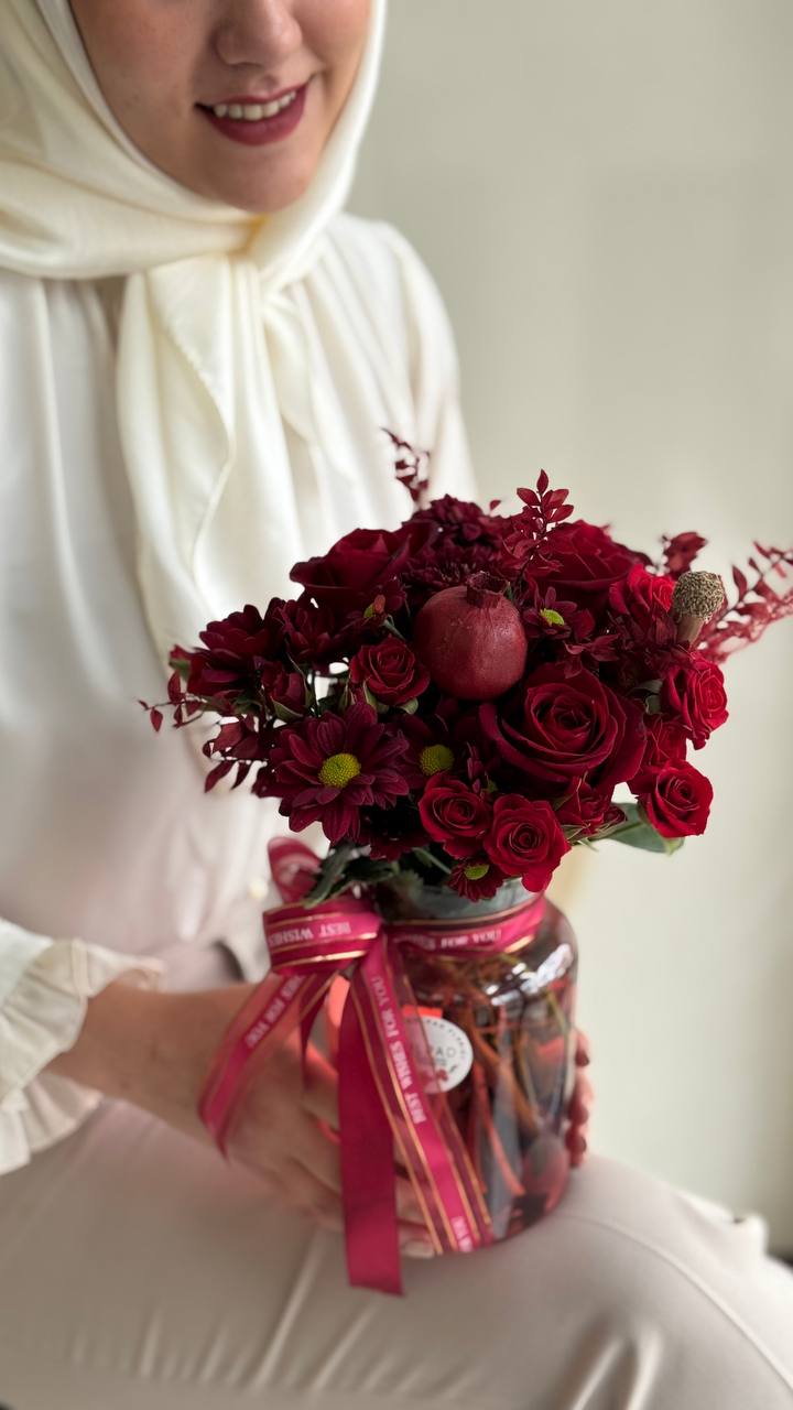 گلدان یکتا با طراحی دقیق و رنگبندی گرم و چشمنواز، ترکیبی منحصر به فرد از رز، رز مینیاتور، داوودی و انار ارائه میدهد. رزها حس کلاسیک و لطافت را منتقل میکنند، رزهای مینیاتور ظرافت و جذابیت بیشتری ایجاد میکنند و داوودیها تعادل و بافتی دلنشین به ترکیب میبخشند. حضور انار، نماد سنتی شب یلدا و طراوت پاییز، این گلدان را به هدیهای خاص و بهیادماندنی تبدیل میکند. با این طراحی، گلدان یکتا انتخابی ایدهآل برای کسانی است که میخواهند هدیهای شیک، ماندگار و یلدایی به عزیزانشان بدهند.